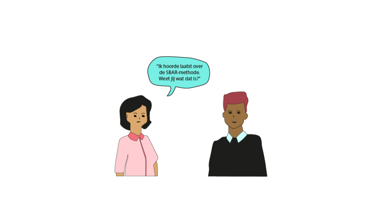 In deze e-learning word je stap voor stap meegenomen in het leren kennen, eigen maken en gebruiken van de SBAR-methode. De SBAR-methode is een gestructureerde communicatie methode die je stapsgewijs meeneemt in het verzamelen van alle relevante informatie over een situatie. Deze informatie kun je met de SBAR-methode vervolgens op een gestructureerde wijze overdragen. De SBAR staat voor Situation (situatie), Background (achtergrond), Assessment (beoordeling) en Recommendation (aanbeveling). Vaak wordt daar nog een tweede R! van Repeat! (herhaal) aan toegevoegd wat ook in deze e-learning het geval is. Wanneer een bewoner plotseling verslechterd of je hebt een niet-pluis-gevoel over de situatie, is het belangrijk dat je de situatie zo duidelijk mogelijk communiceert naar een collega uit je team, de triageverpleegkundige of medisch behandelaar. Zij kunnen de urgentie van de situatie inschatten, bepalen of zij wel/niet langs gaan bij de bewoner en mogelijk een beleid op afstand afspreken. Het is dan belangrijk dat de melding zo volledig mogelijk wordt gedaan. Door het aanbrengen van structuur met de SBAR-methode wordt het verhaal helder overgedragen. In deze e-learning leer je wat de SBAR-methode inhoud, wanneer je deze toepast, op welke wijze je deze toepast en wat de meerwaarde is voor jezelf, de bewoner en de organisatie. Daarnaast zijn er oefenmomenten verwerkt in de e-learning om de SBAR eigen te maken. In hoofdstuk 1 leer je wat de SBAR-methode precies inhoudt. Heel veel succes!